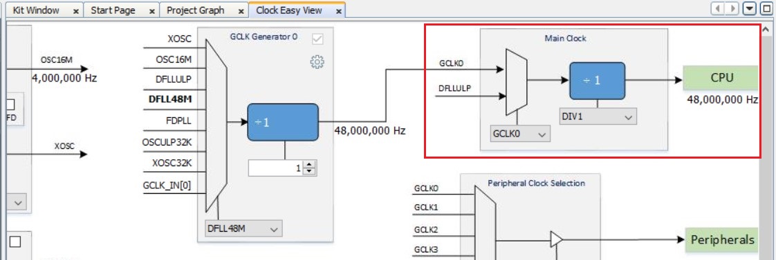 open the Clock Easy View window and verify that the Main Clock is set to 48 MHz.