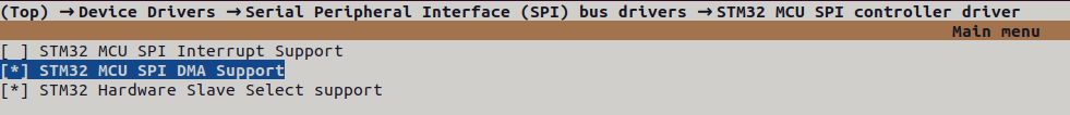 (Top) → Device Drivers → Serial Peripheral Interface (SPI) bus drivers → STM32 MCU SPI controller driver -> STM32 MCU SPI DMA Support