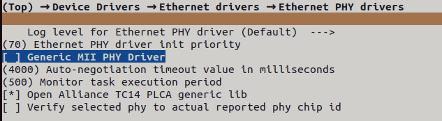 (Top) → Device Drivers → Ethernet drivers → Ethernet PHY drivers → Generic MII PHY Driver