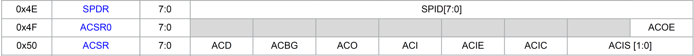 On the ATmega48PB/88PB/168PB register location 0x4F is the ACSR0 register. This register contains one bit that controls the analog comparator output to Pin 3, ACOE - Analog Comparator Output Enable, as shown in figure Figure 2-2.