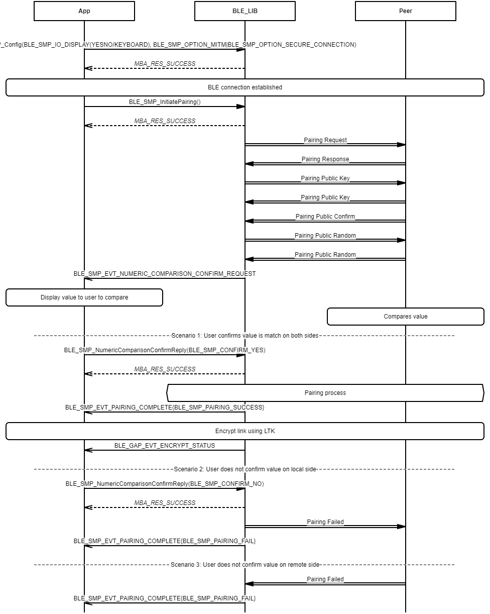 Example demonstrating SMP LESC Pairing in the GAP central role with Numeric Comparison