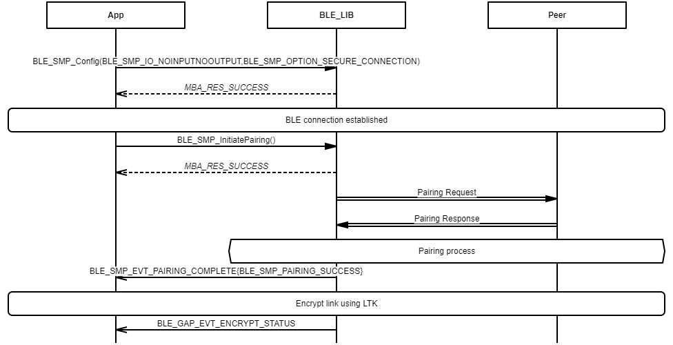 Example demonstrating SMP LESC Pairing in the GAP central role using the "Just Works" method
