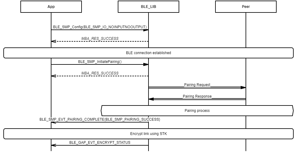 Example demonstrating SMP Legacy Pairing in the GAP central role using the "Just Works" method