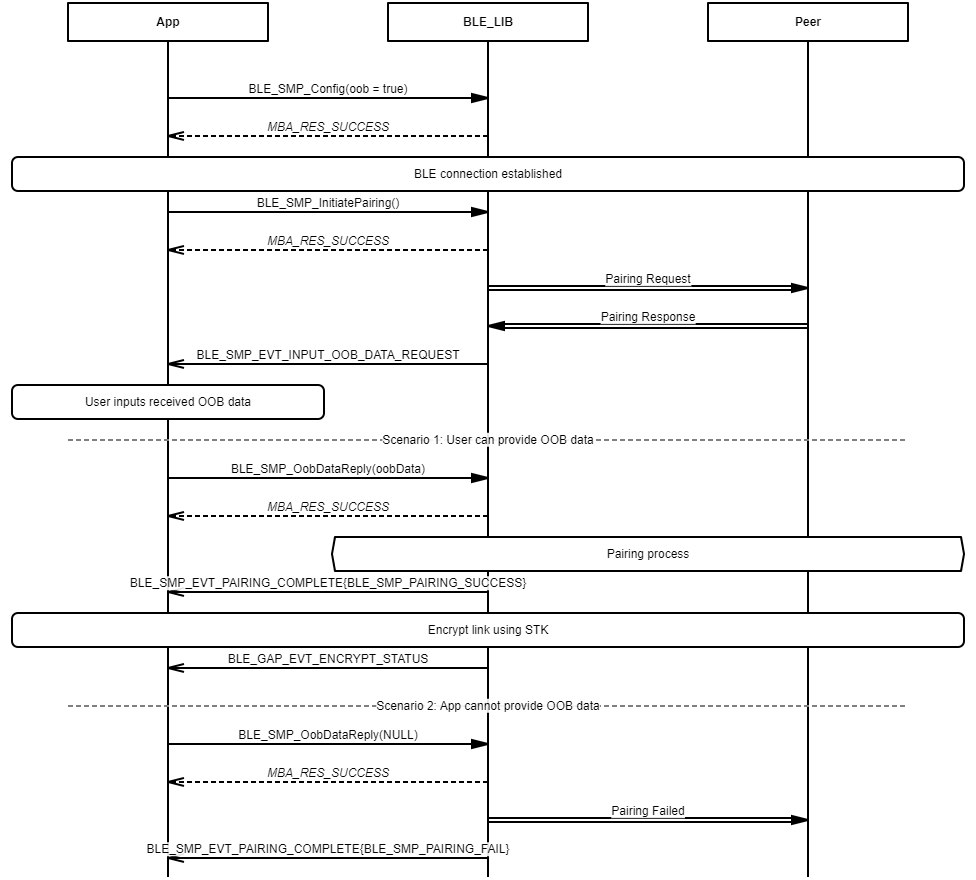 Example demonstrating SMP Legacy Pairing in the GAP central role with Out-of-Band (OOB) authentication