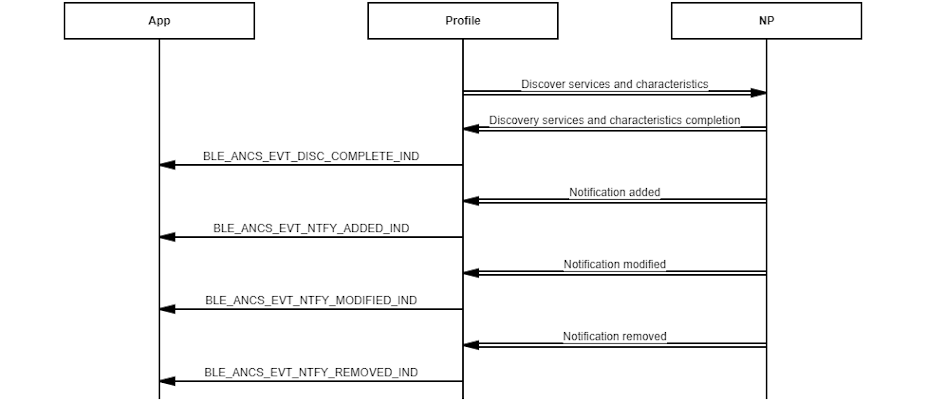 Message Sequence Chart Example demonstrating the process of receiving ANCS notifications. Example demonstrating the retrieval of notification attributes.