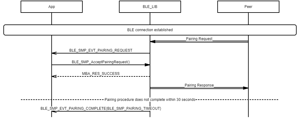 SMP Pairing Timeout Handling Example demonstrating SMP Pairing Timeout in the GAP central role Example demonstrating SMP Pairing Timeout in the GAP peripheral role