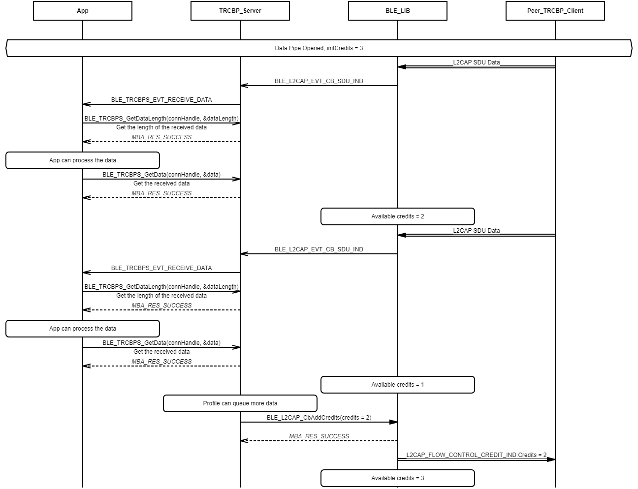 Example demonstrating data exchange from server to client over the Transparent Credit Based Profile data pipe.