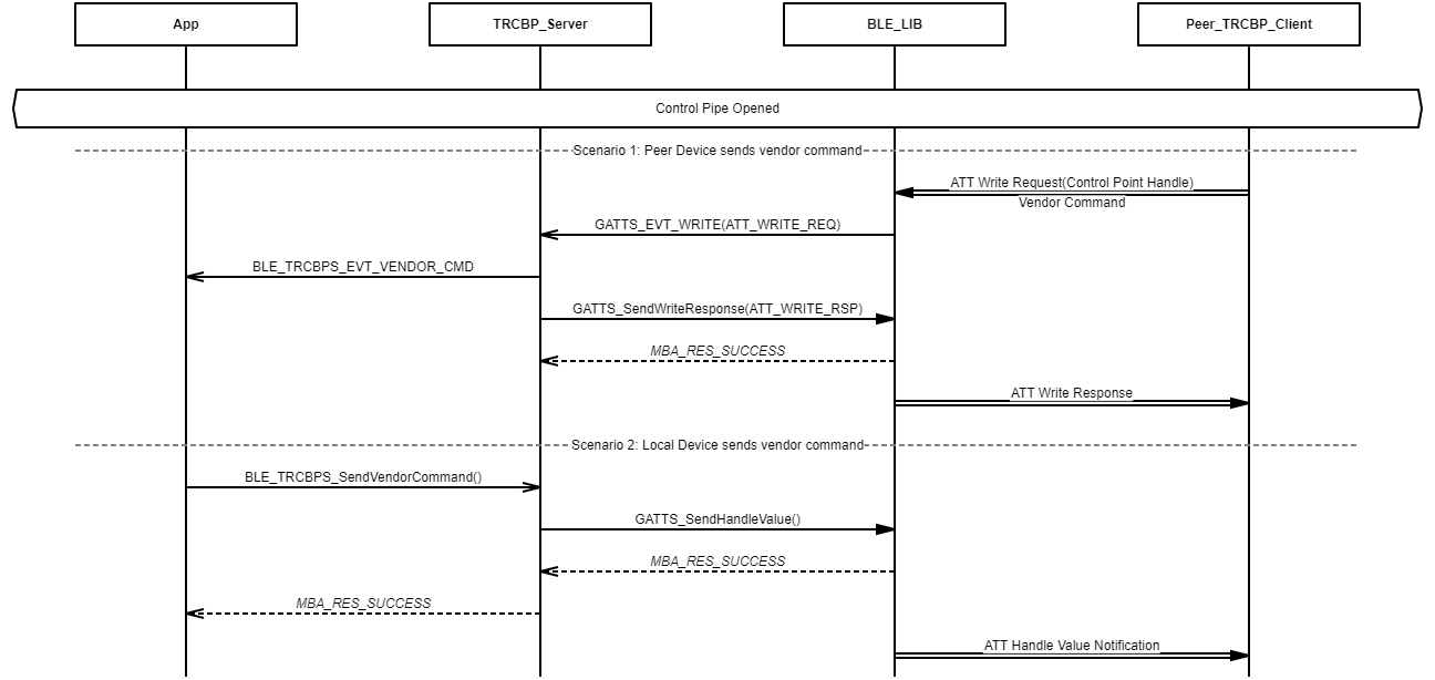 Example demonstrating vendor command exchange over the Transparent Credit Based Profile control pipe.