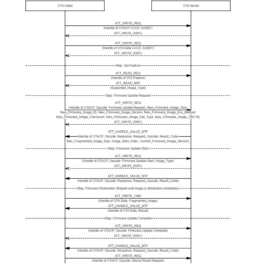 The following diagram shows the message sequence chart of OTA firmware update process.