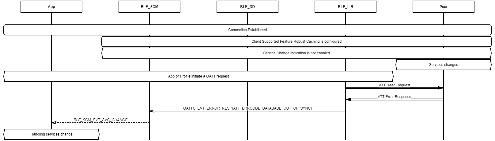Manage Service Change Status on Remote Device Example demonstrating how to receive a service change indication from a remote peer. Example demonstrating how to receive a database out of sync error code from a remote peer.
