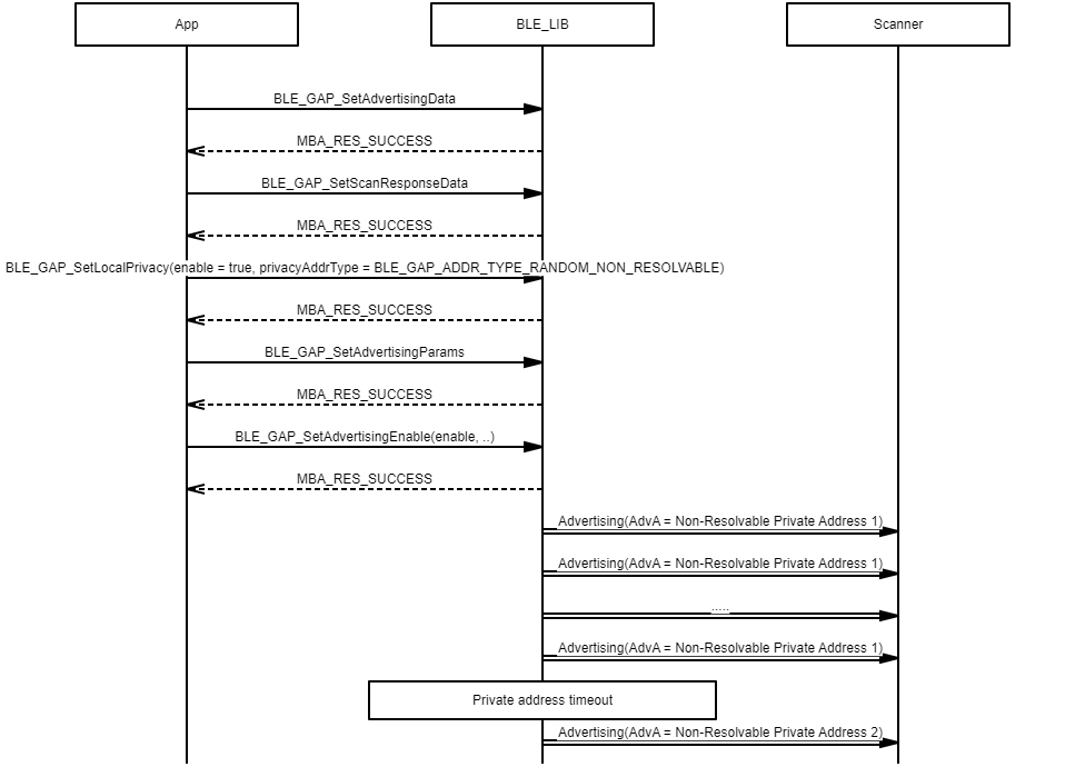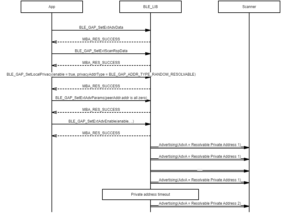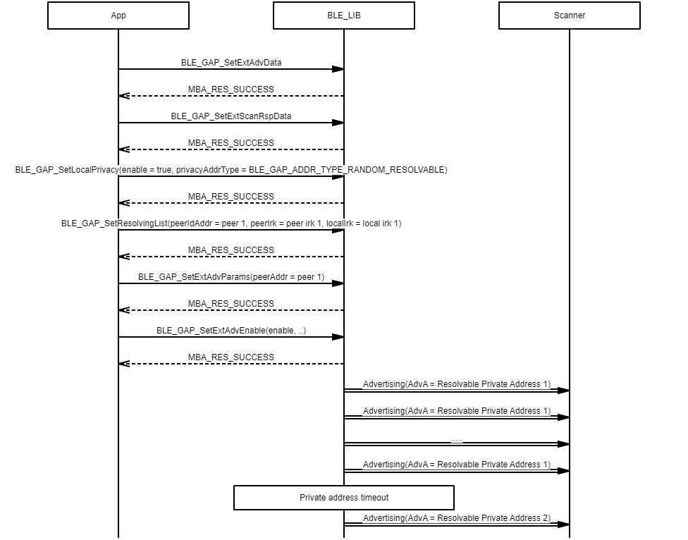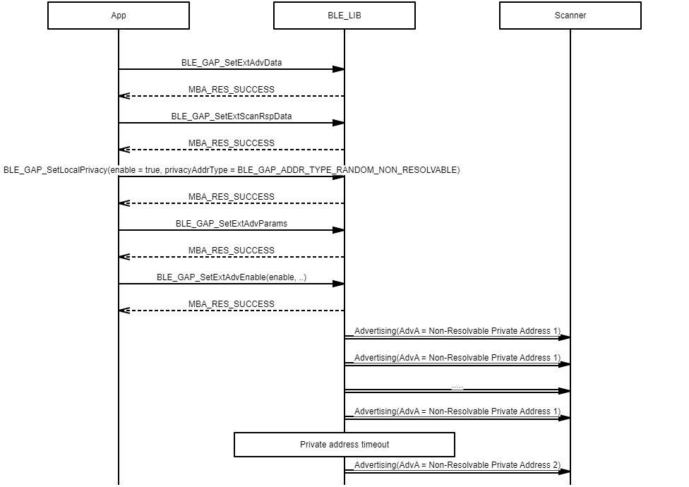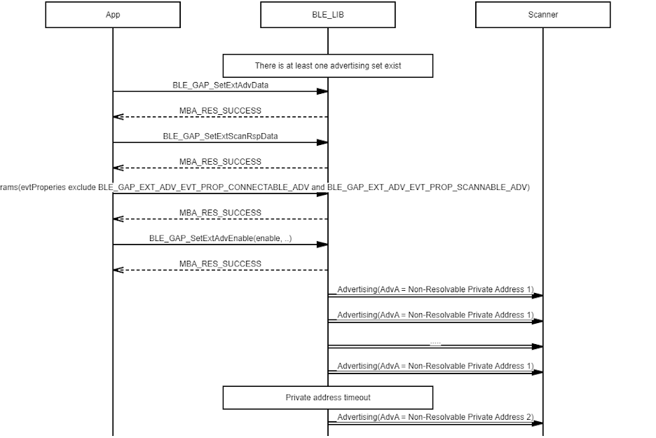 Example demonstrating the use of a non-resolvable private address in extended privacy advertising procedures