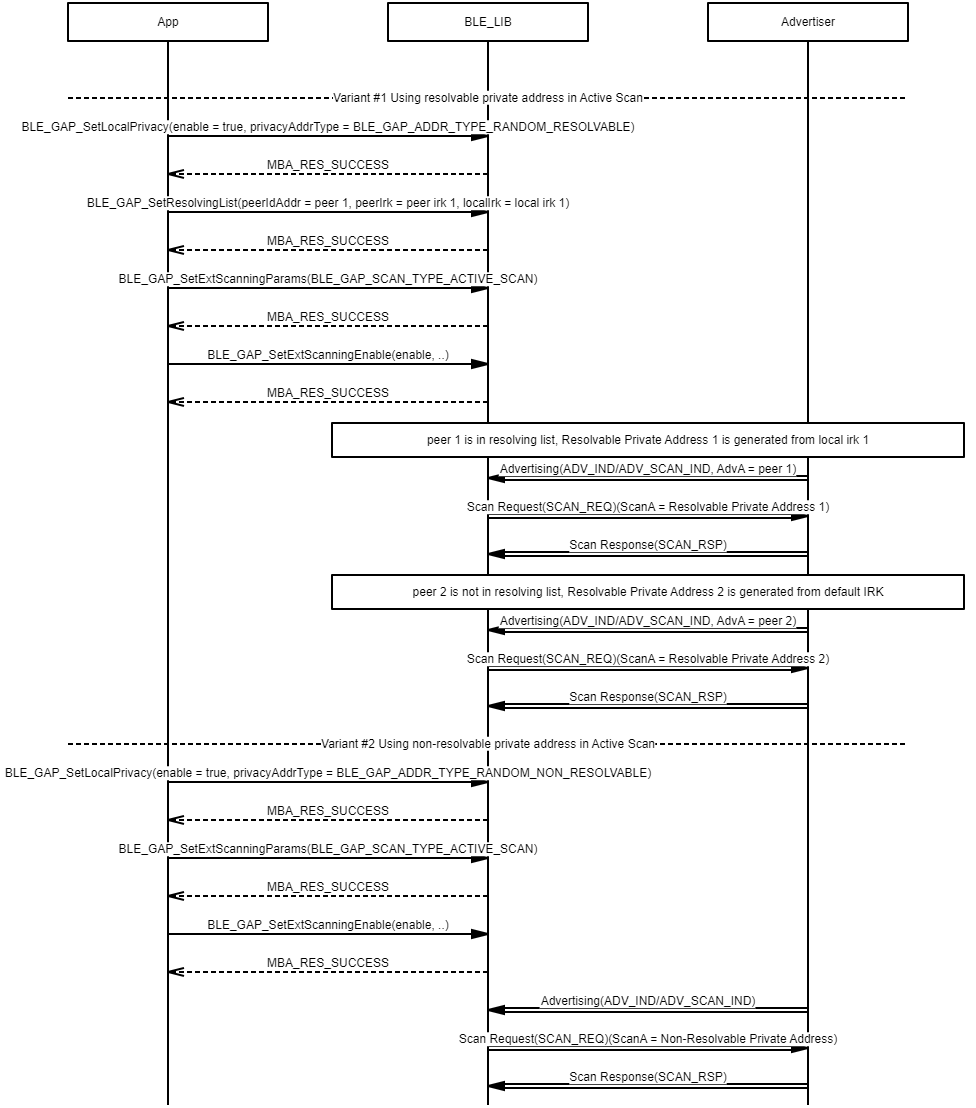 Example demonstrating the use of a resolvable private address generated from the resolving list IRK in extended privacy advertising procedures