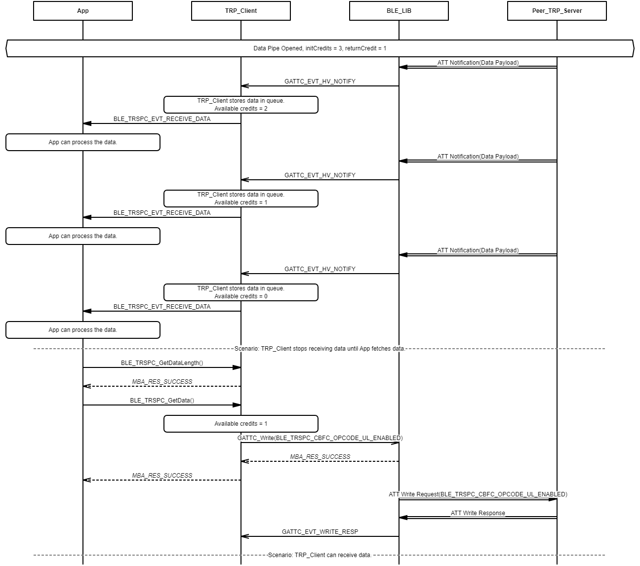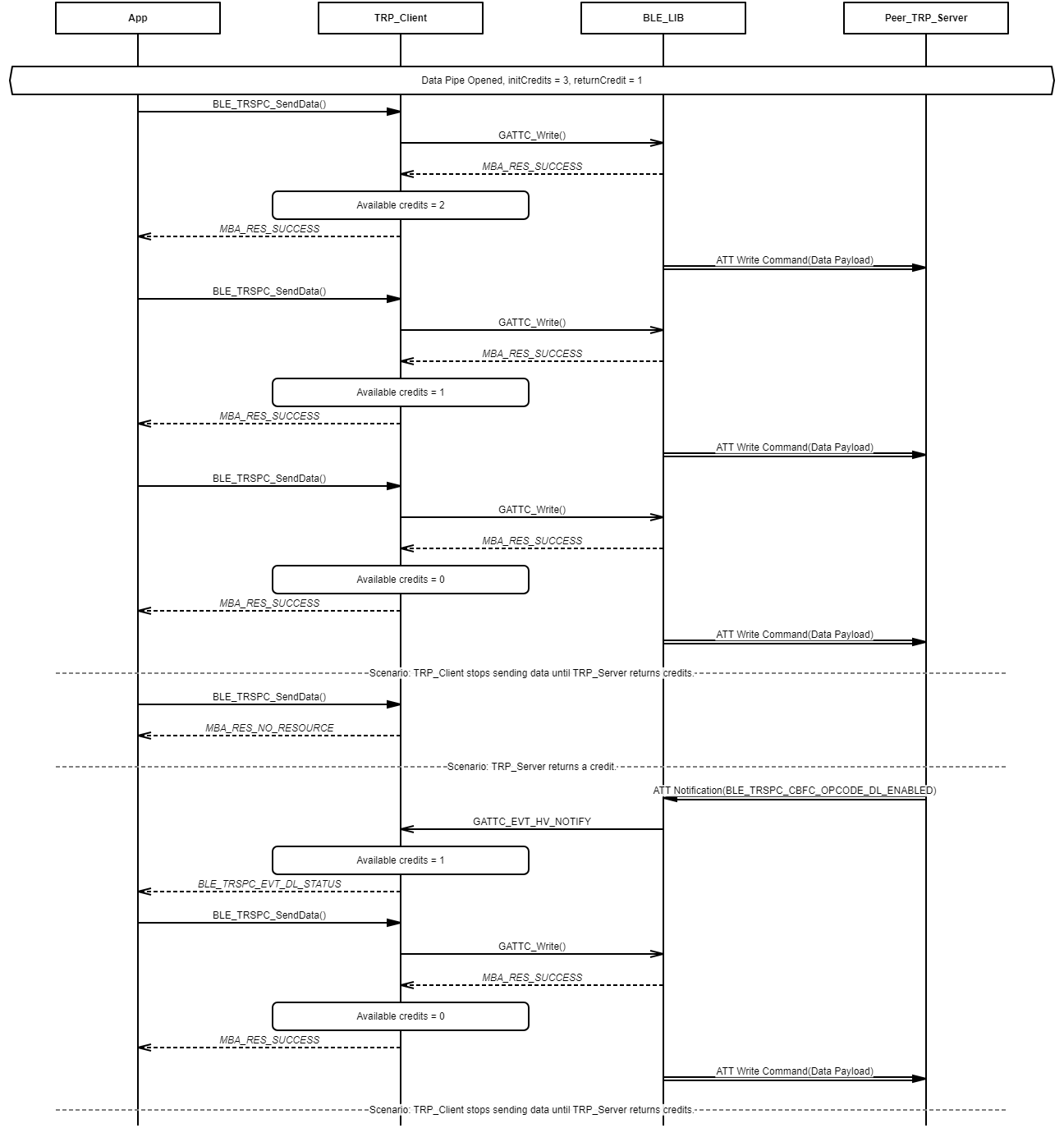 Example demonstrating data exchange over the data pipe of the Transparent Profile client role, where the data is transmitted from the client role.
