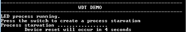 - WDT will reset the device in four seconds and the demonstration should restart.