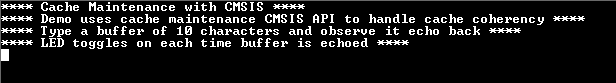 This example application shows how to do cache maintenance operation by cleaning and invalidating the cache for the DMA buffers located in the cacheable SRAM region.