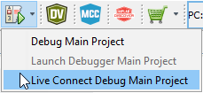 | Live Connect Debug | The hardware tool will connect, a debug session will begin, and the