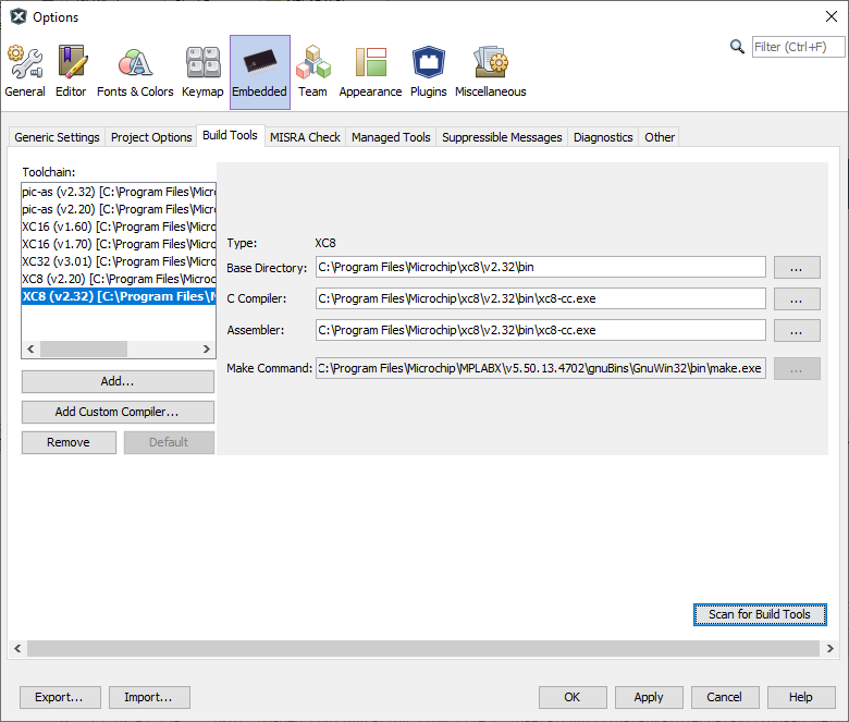 Launch MPLAB X IDE. Ensure that the compiler is shown in the IDE window . If not, click the Add button to find the compiler install location manually.