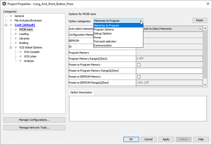 First, check the programming options in the Project Properties window. For this tutorial, no options need to be changed.