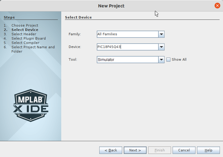 Create a new Application Project in MPLAB X IDE