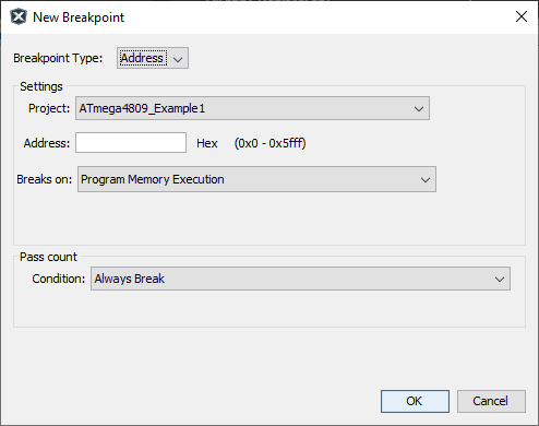 The options available for the breakpoint are determined by the type of breakpoint selected and the selected device (not all options are available for all devices).