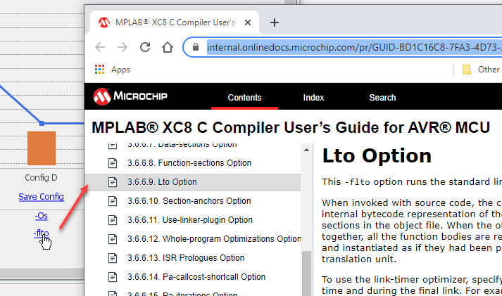 Click the link of an optimization (e.g., -Os) used in a configuration to