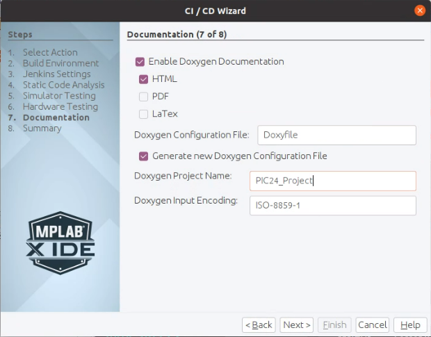 Check to enable Doxygen as a documentation tool and specify the output. For more info on Doxygen see Doxygen on GitHub.