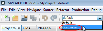 3. Click on the project name, in the Projects window, then click on the Set Project Configuration drop down menu to select Customize.