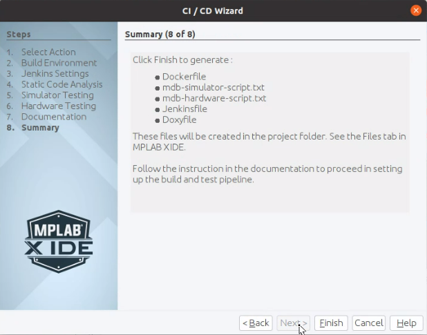 Click Finish to complete the setup. CI/CD Wizard will then generate files based on the setup information.