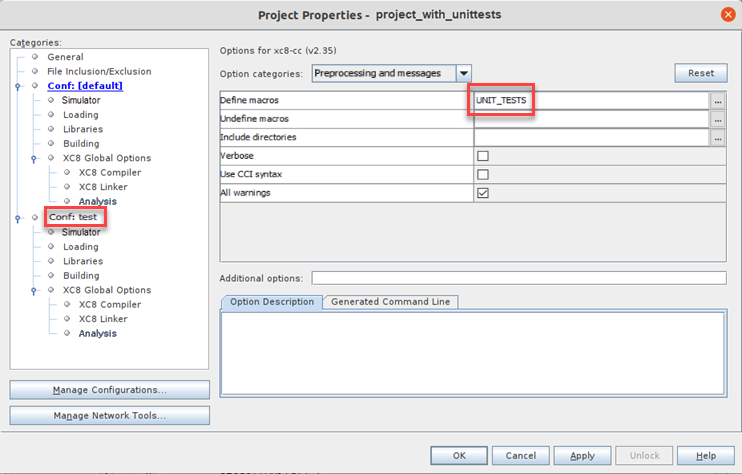This way you can have one common project but one configuration that optimizes the build for production, and one test configuration that runs the test.