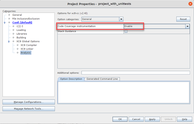 Check Enable Code Coverage if you want coverage data. But note that this requires that your project is set up to instrument your build with code coverage. To do this you need to open project properties and configure the Code Coverage instrumentation in the Analysis section (see figure below).