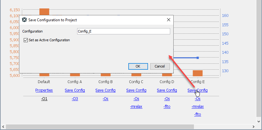 Click on the Save Config link under a configuration (e.g., Config E) that you want to add to your project. This will open the Save Configuration to Project dialog (see figure below). If you want this to be the active configuration in the project, check the checkbox. Then click OK.