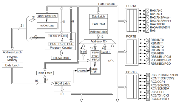 | PORTA | 05h | TRISA | 85h | PORTA | 105h | TRISA | 185h |