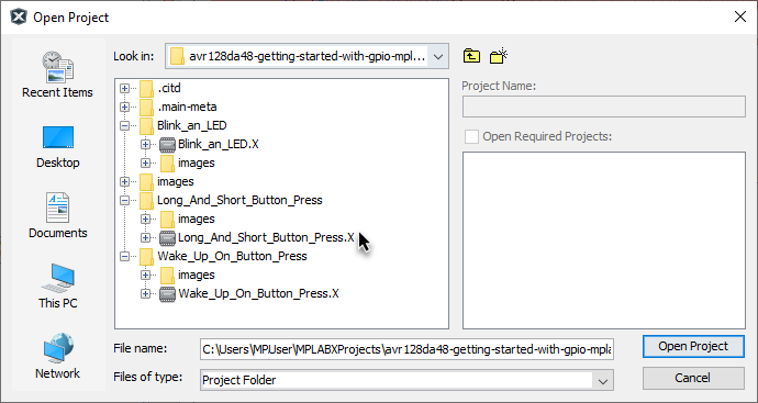 4.5 Opening an Example Project in MPLAB X IDE