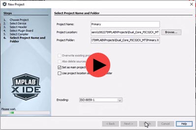 - Step 2. Select Device (and Tool). Select the primary device, e.g., PIC32CX2051MTSH128, and then select your debug tool.