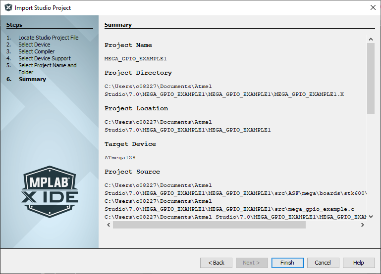 6.2.3.6 Import Atmel Project - Summary