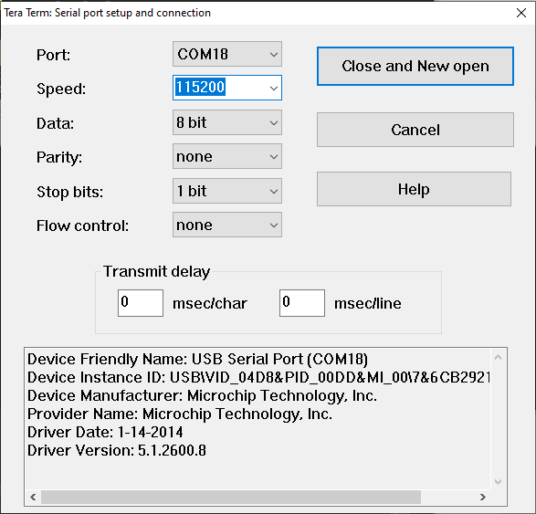 - Repeat Steps 4 and 5 to set up the other Tera Term window. Both must have their serial port baud rate set to 115200.