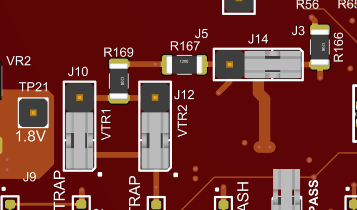 The diagram above shows the 3.3V default settings. To power VTR1 with 1.8V, move jumper