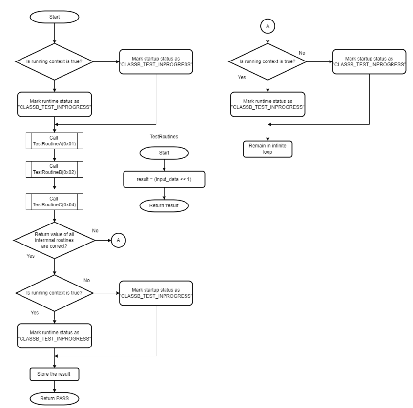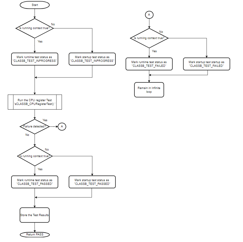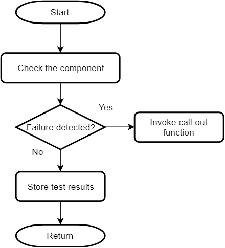 The self-test for PC calls multiple functions in predefined order and verifies that each function is executed and returns the expected value. If the return values of all test functions are correct, the Program Counter is assumed to be working fine. This self-test can be used at startup as well as run-time.