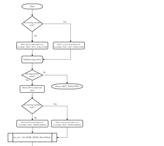 | CLASSB_SRAM_MarchTestInit | This self-test checks the SRAM with the help of RAM March algorithm. |