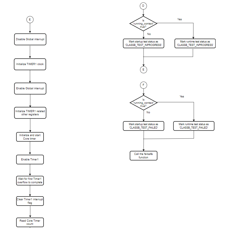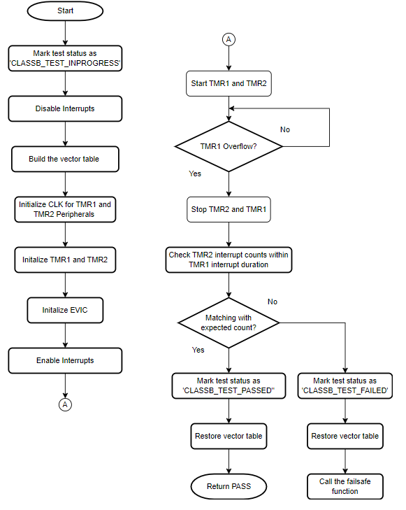 - The startup self-test utilizes the interrupts generated by TMR2 and TMR1 with polling method. For run-time testing of interrupts, a separate self-test need to be developed.