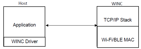 By default, WINC firmware includes TCP/ IP Stack, and Wifi/ BT MAC. Socket Mode exports driver level APIs for the User to write his Application and configure / communicate the TCP/ IP Stack and the Wi-Fi Stack using these APIs.