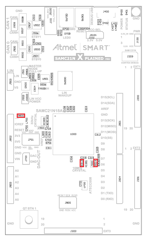 J300 | PA15_XOUT | 16MHz crystal pin | Cut this jumper and mount resistors to find 16MHz