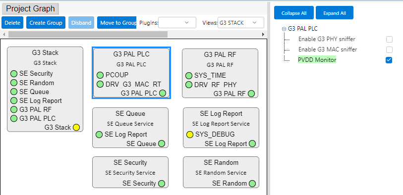 When all components are activated, they appear on the Project Graph:Figure 2-30. G3 Components Added