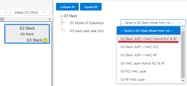 on Configuration Options set G3 Mode of Operation to G3 Stack (ADP + MAC)