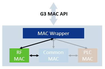 The G3 MAC RF module is in charge of managing the RF interface. It relies on MAC Common to store some of its resources (those shared with MAC PLC).