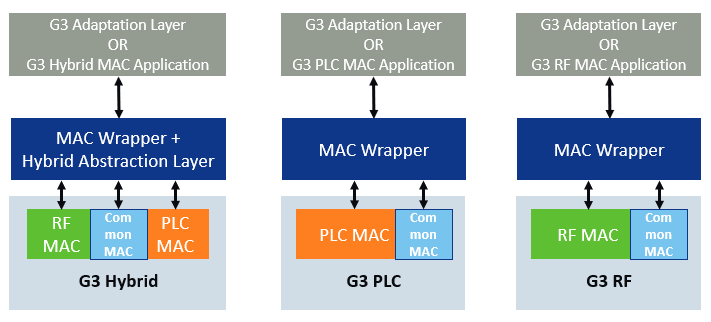 The G3 MAC Wrapper module is the access point to G3 MAC layers: PLC MAC, RF MAC, and the Common MAC module.