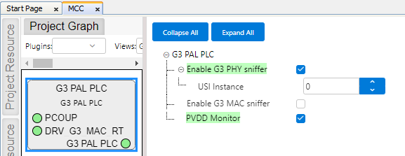 G3 PLC PAL is configured through MCC. Below is the figure of the MCC configuration window for PLC PAL and brief description.
