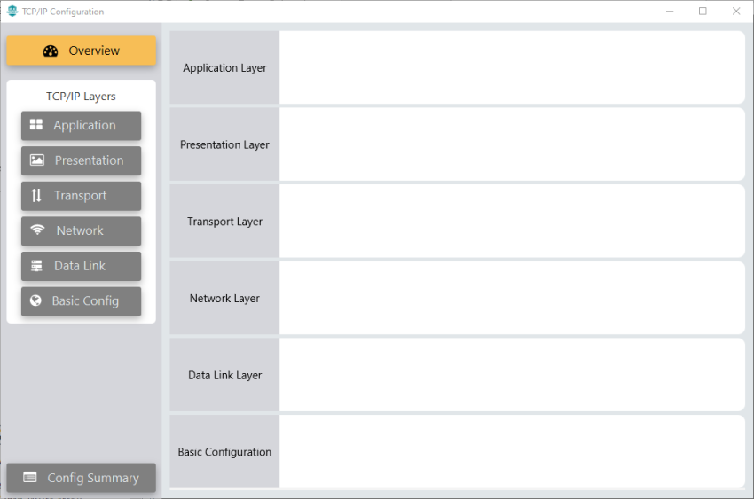 - This will open an empty TCP/IP Configuration window, as seen on the figure.