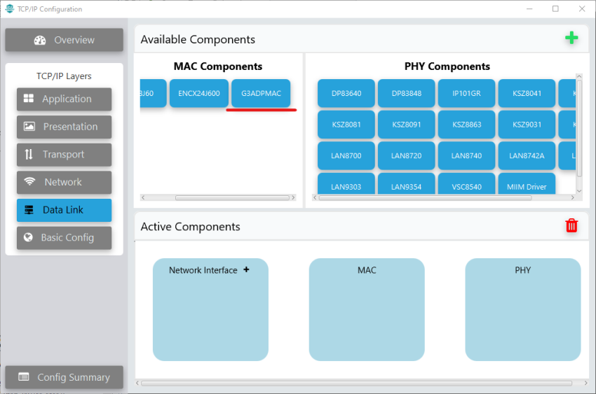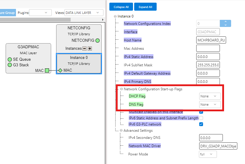 figure.Note: Some of them are auto-configured when G3ADPMAC Component is linked to Network Interface.