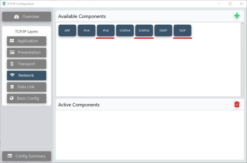 button on the left panel and add IPv6, ICMPv6 and NDP components.